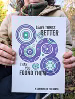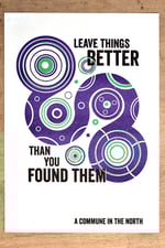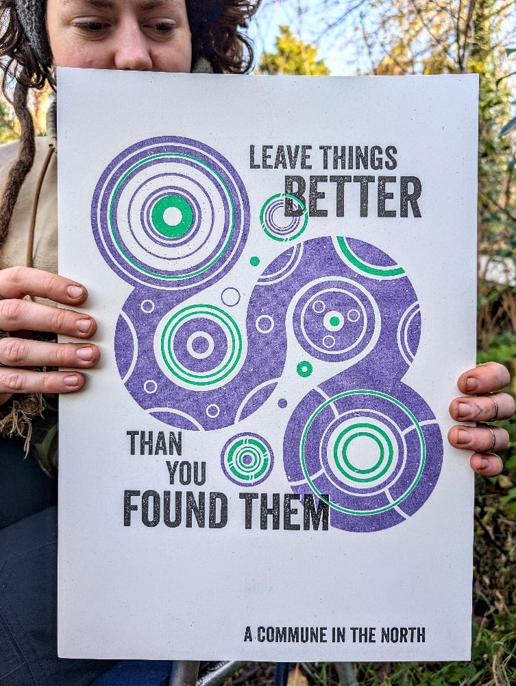 Risograph print of ACitN's 'Leave Things Better Than You Found Them' poster, printed on beautiful 225gsm Context Birch paper. All proceeds help towards building a radical, egalitarian, anti-oppressive, eco-commune for up to 200 peaple in the north of England.